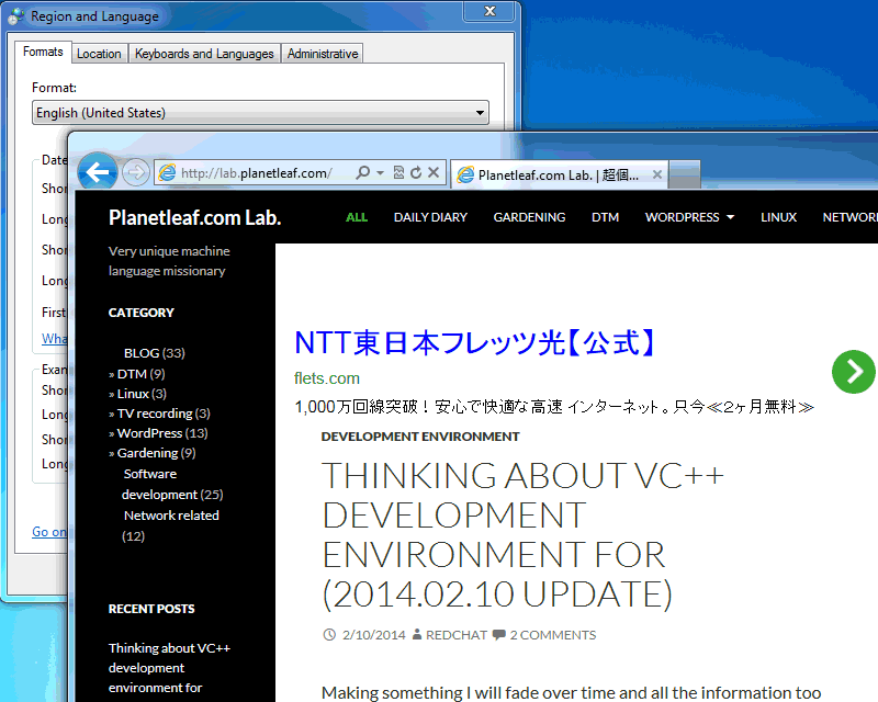 言語判定に関しては コントロールパネル の 地域と言語 で形式を変更する事により確認できます。